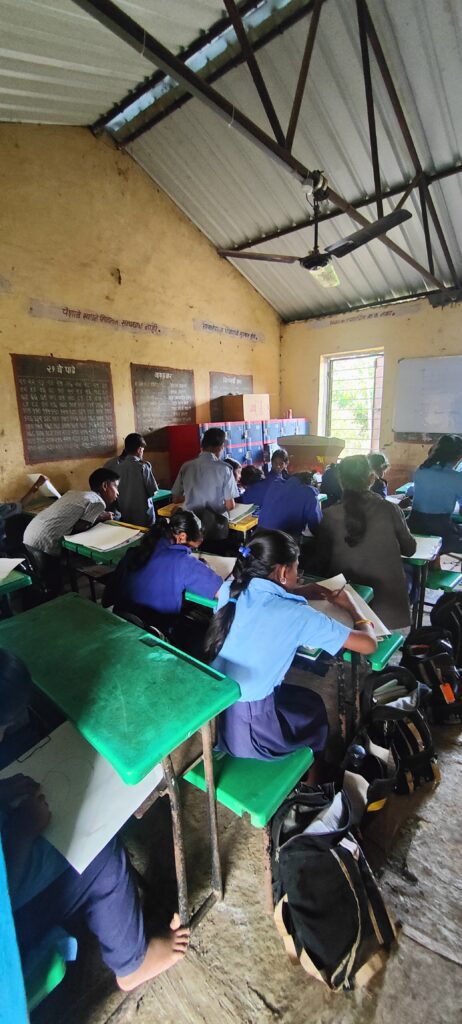 To understand children and their families’ views on what constitutes a healthy food plate, we organised a drawing competition in the village government school in August 2025. Children drew well, and brought food alive on paper. The trend towards non-local food was evident in the drawing sheets. Only two of the 55 students who participated mentioned hyper-local like varan (lentil gravy), amti (lentil gravy), and pandhra, laal rassas (meat curries). Most children drew panner gravy (cottage cheese gravy), which is not local to Maharashtra, but has achieved fame across the country due to restaurateurs’ entrepreneurial pursuits. As you can see from the pictures, the kids know a lot about what healthy food is. However, maybe they are unable to implement their knowledge due to various barriers.